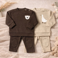Nous sélectionnons des matières nobles — coton biologique certifié et coton naturel et bambou — reconnues pour leur délicatesse, leur durabilité et leur respect absolu de la peau sensible des tout-petits.